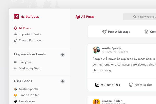 Secure feed platform for team communication without public channels.